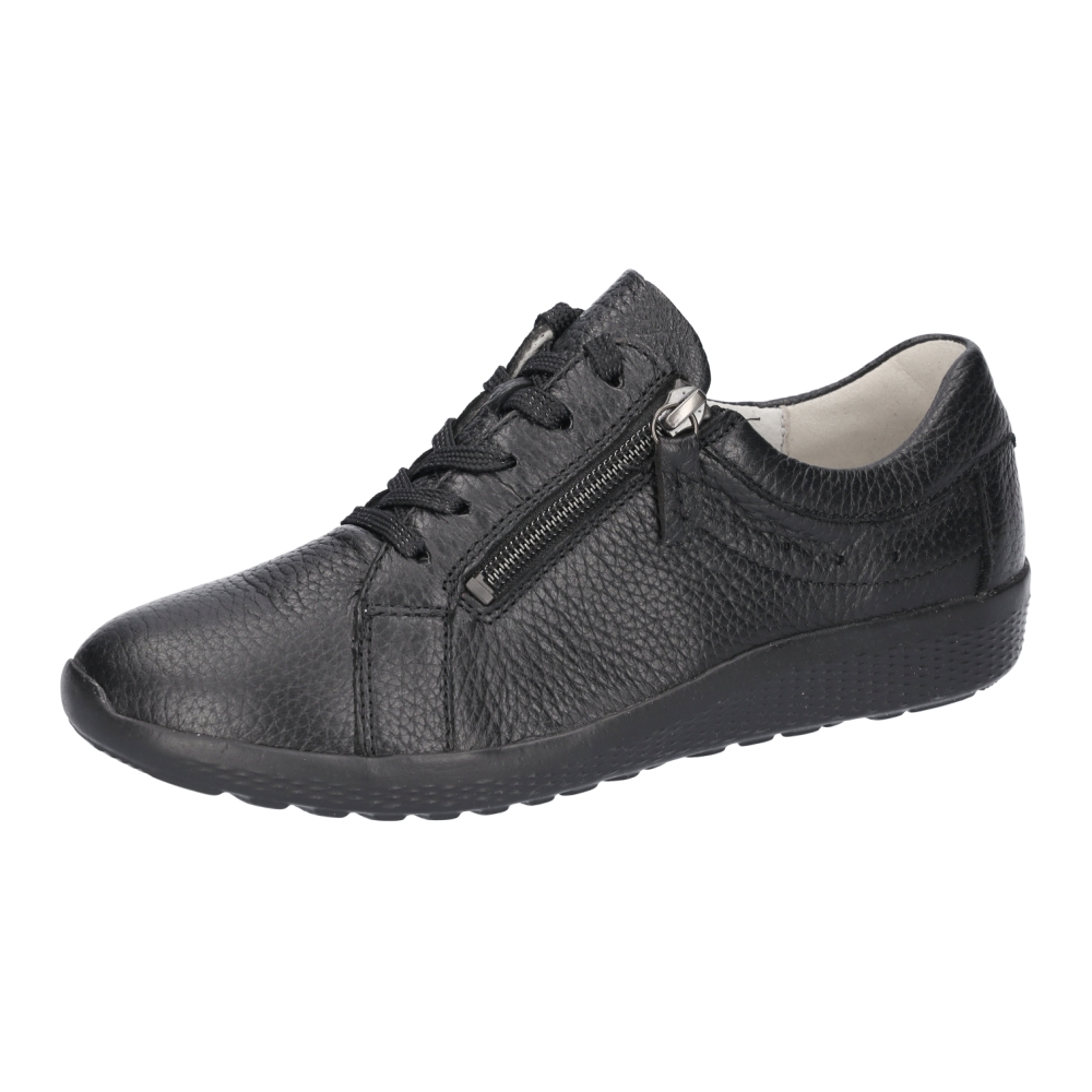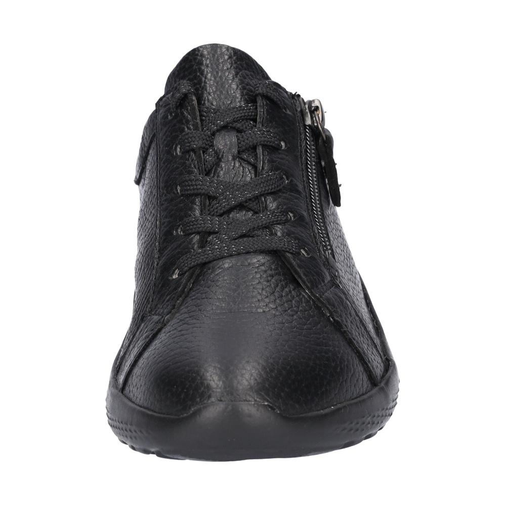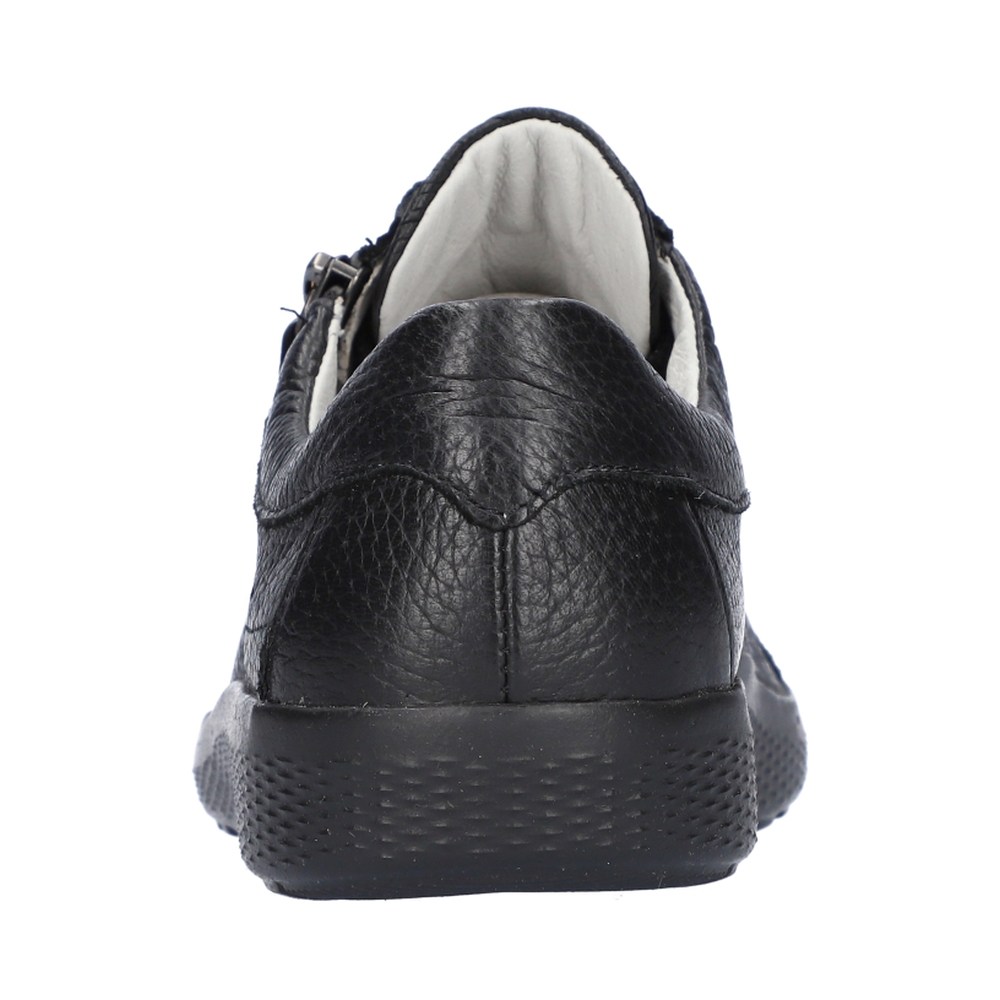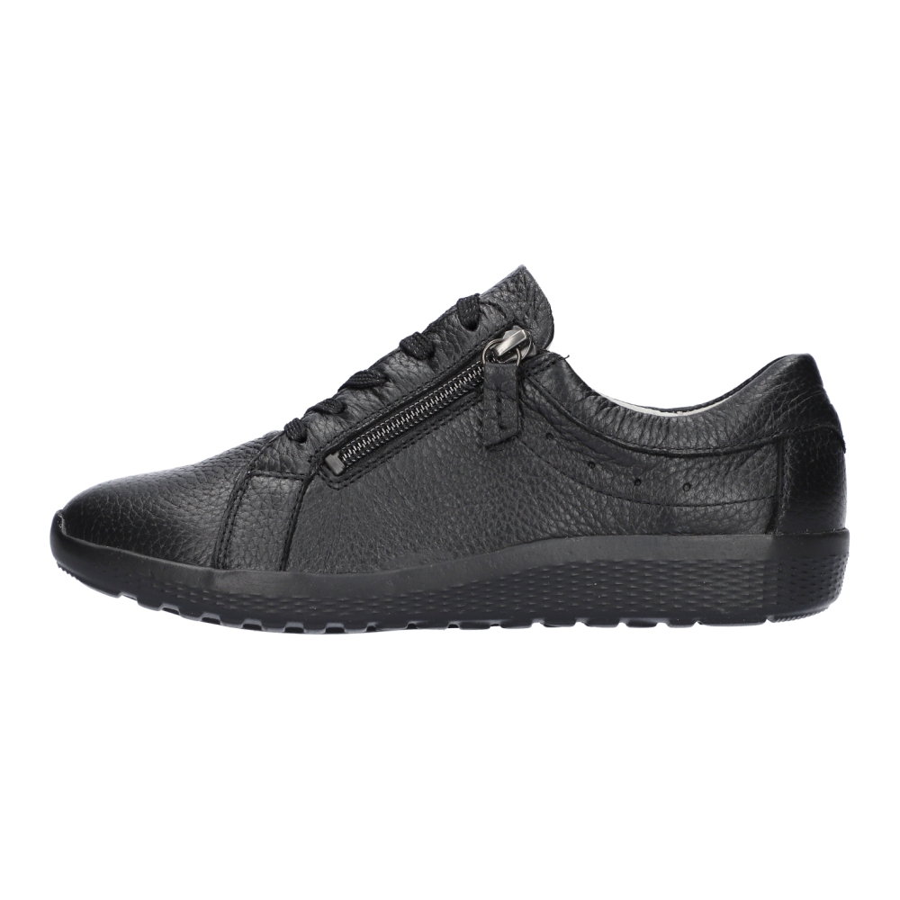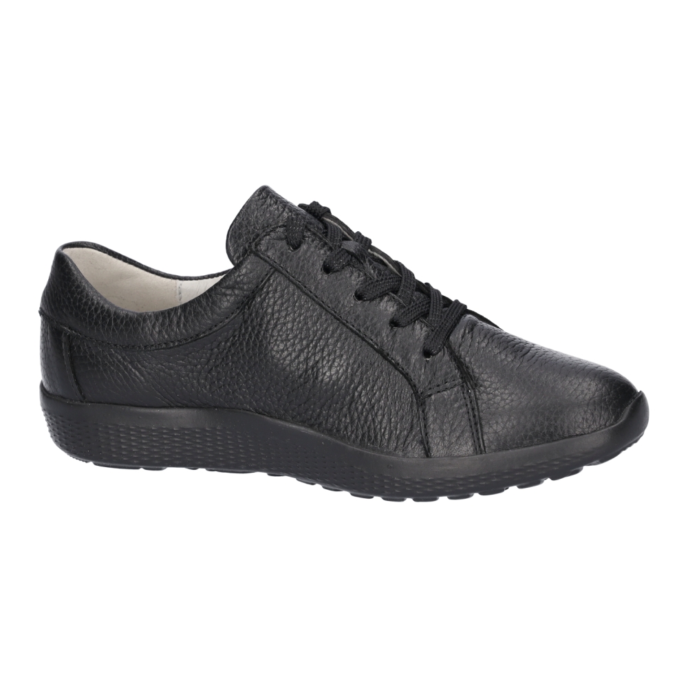 Typ: półbuty damskie Kolor: czarny Materiał wierzchni: skóra naturalna Wnętrze buta: wyjmowana wkładka Wysokość klinu: 30 mm Dodatkowe informacje: Wyjmowana wkładka daje możliwość wymiany na własną wkładkę ortopedyczną. Solidna antypoślizgowa podeszwa amortyzuje mikro-wstrząsy. Sznurówki pozwalają na idealne dopasowanie do stopy, suwak z boku umożliwia zakładanie bez rozsznurowywania. Obuwie lekkie i elastyczne wykonane z bardzo miękkie skóry.