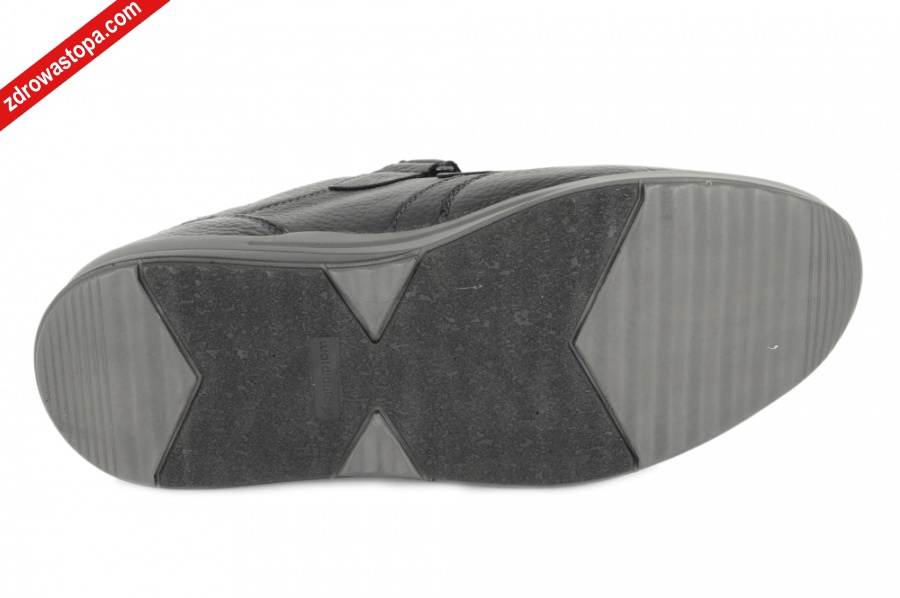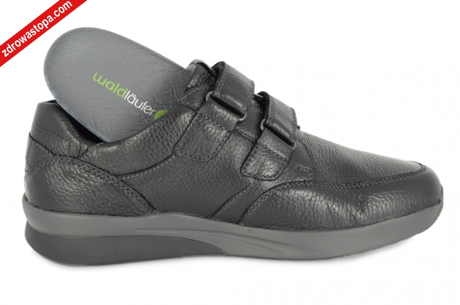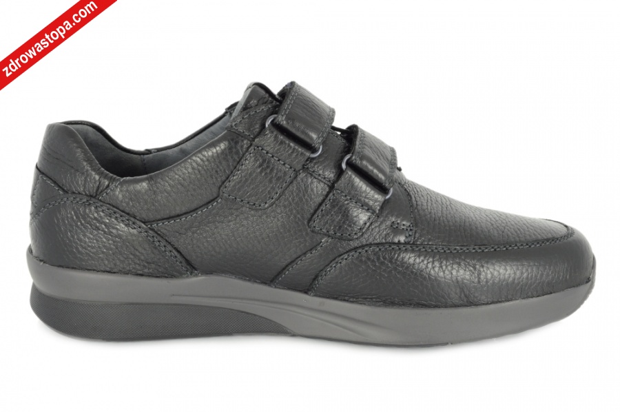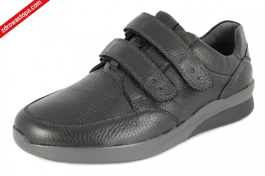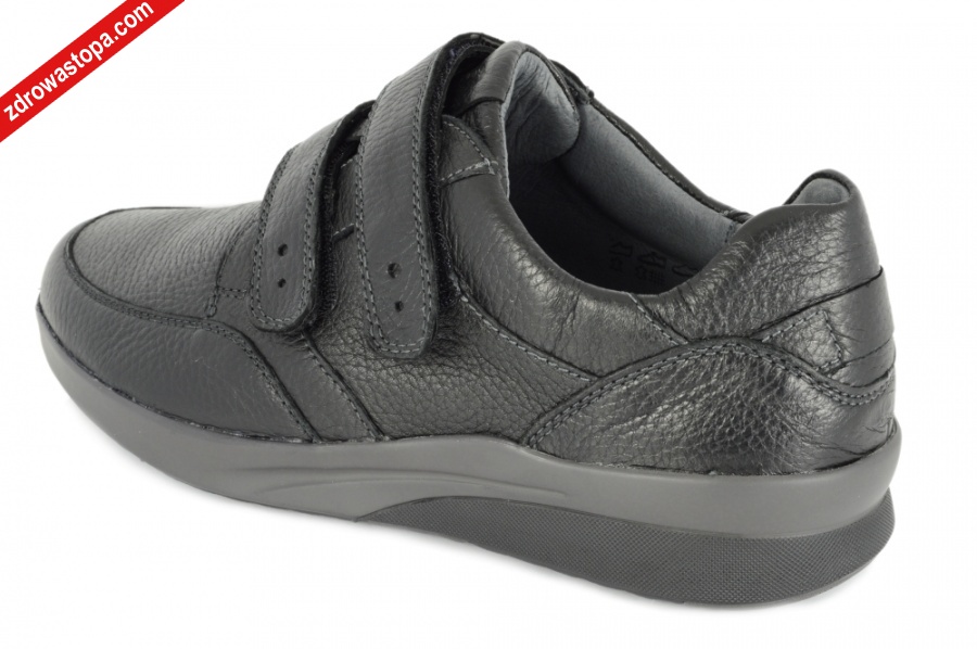 Typ: półbuty męskie Kolor: czarny – schwarz Materiał wierzchni: skóra naturalna z jelenia Wnętrze buta: przód z naturalnej bawełny, pozostała część skórzana Wysokość klinu: 30 mm Dodatkowe informacje: Duża tęgość K przeznaczona jest dla Panów z wysokim podbiciem. Wyjmowana wkładka daje możliwość wymiany na własną wkładkę ortopedyczną. Buty wykonane z bardzo miękkiej skóry jeleniej, zapewniają komfort użytkowania. Solidna podeszwa amortyzuje mikro-wstrząsy. Zapięcie na dwie rzepy zapewnia dobre dopasowanie do stopy. Opracowano kształt buta w taki sposób, że wizualnie wrażenie jest szczuplejszej tęgości.