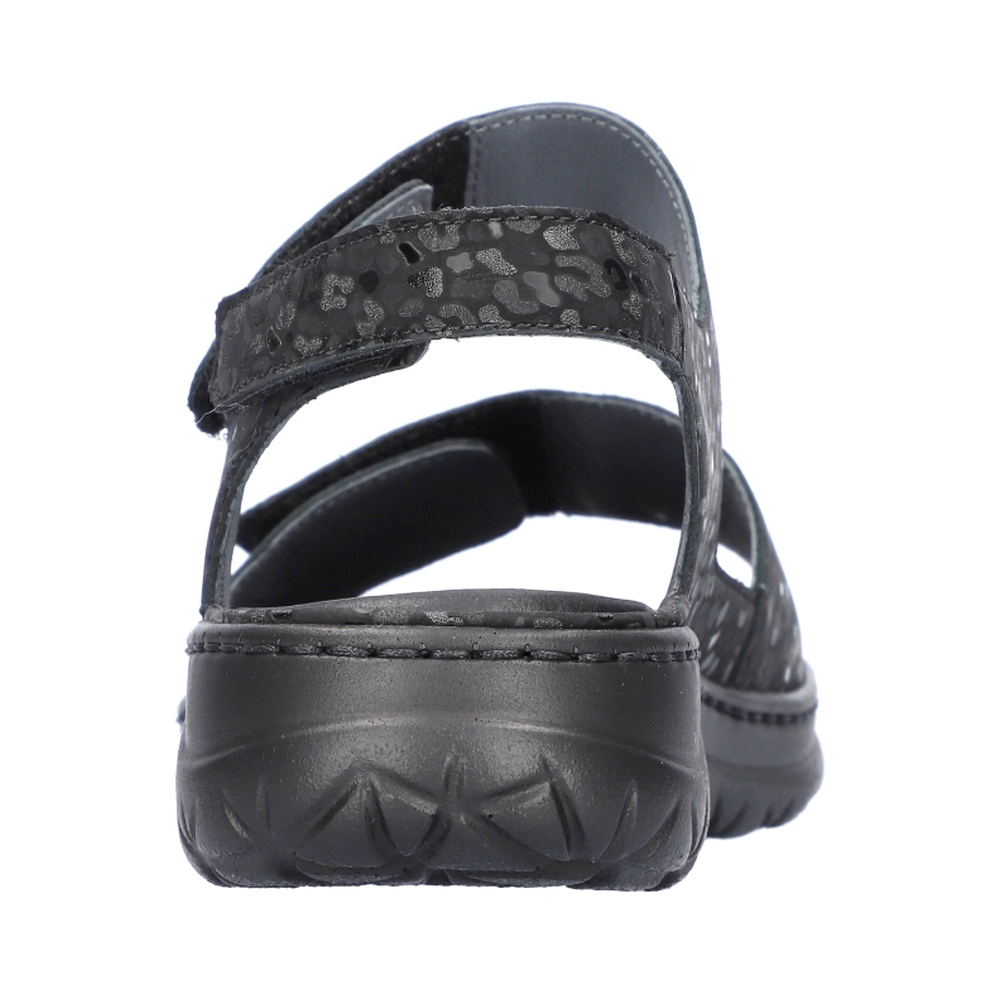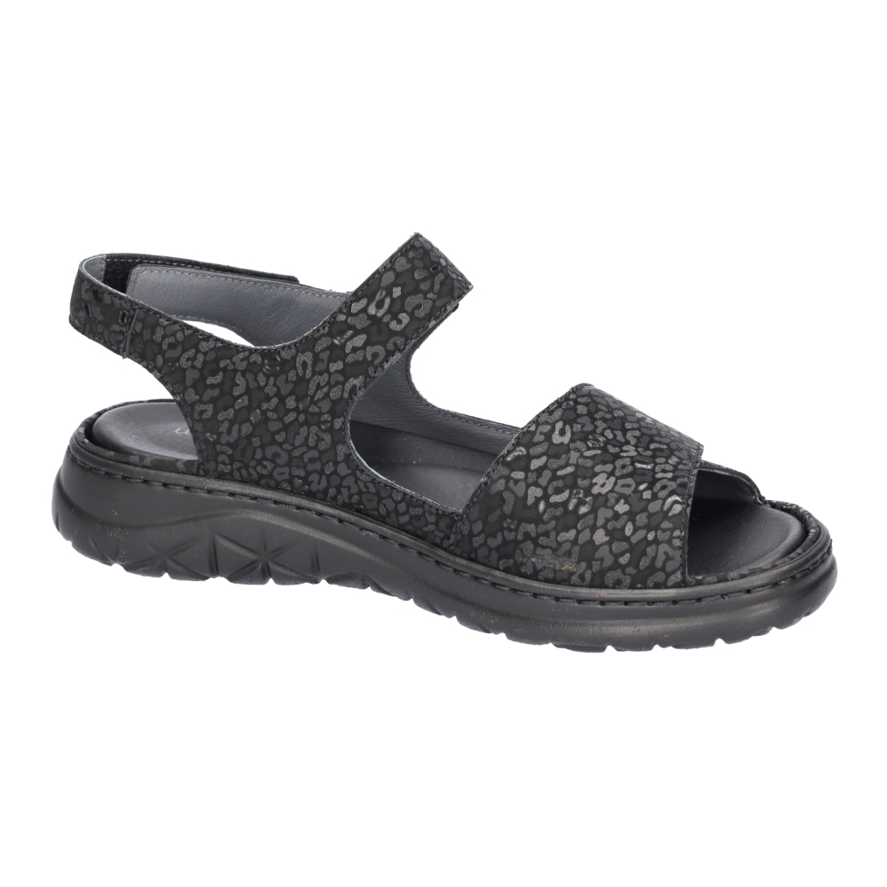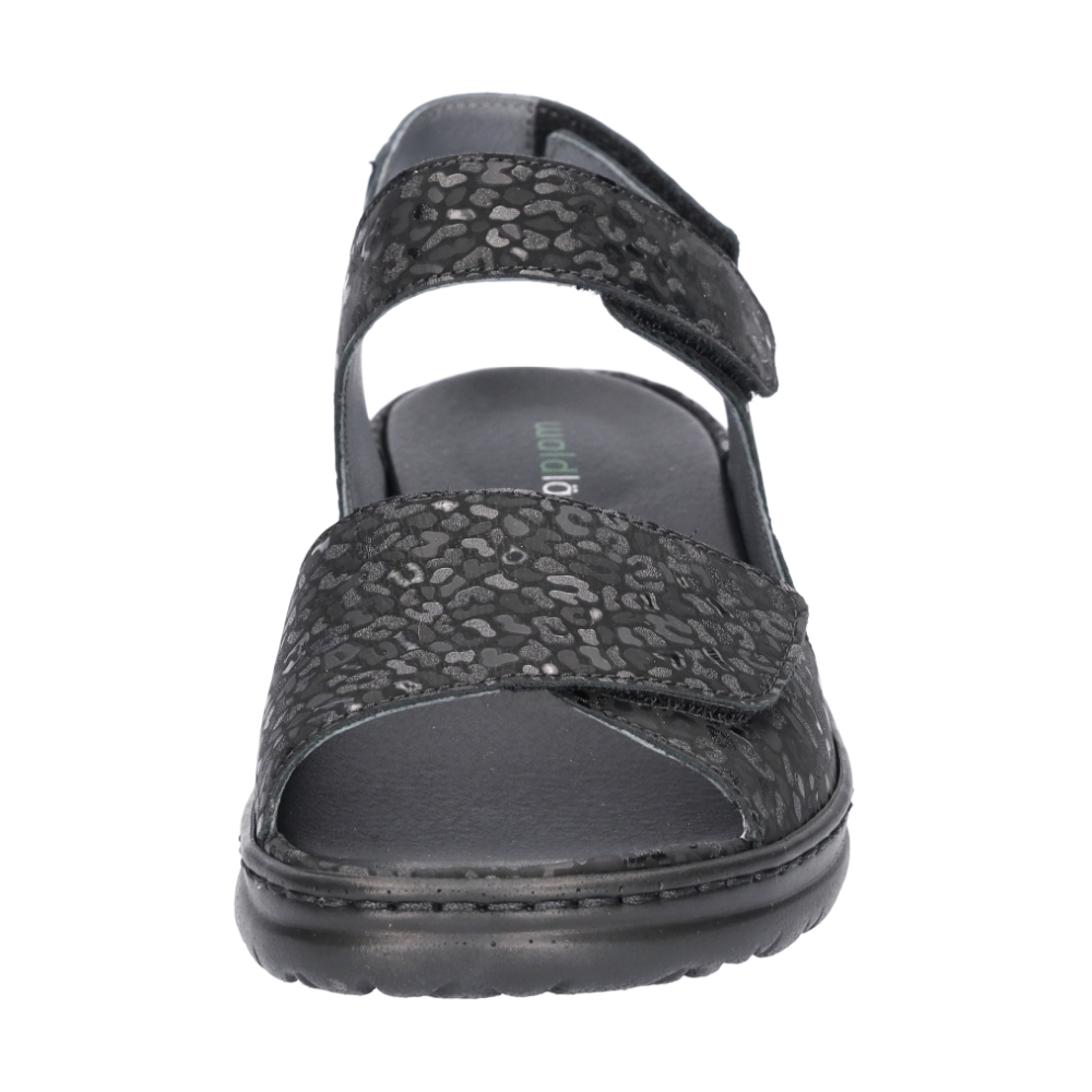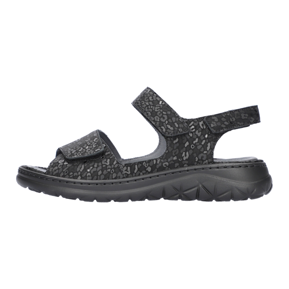 Typ: sandały damskie Kolor: czarny Materiał wierzchni: skóra naturalna Wnętrze buta: skóra naturalna Dodatkowe informacje: Obuwie dobrze trzyma się na nodze dzięki zapięciu na trzy rzepy. Pod piętą znajduje się punkt amortyzujący drgania. Wyjmowana wkładka wykonana ze skóry naturalnej. Podeszwa lekka nie ślizgająca się.