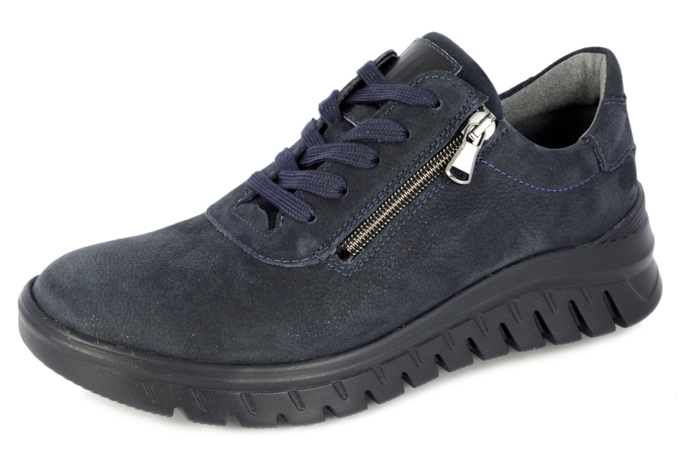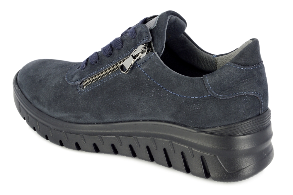 Typ: półbuty damskie Kolor: granatowy – notte Materiał wierzchni: skóra naturalna nubuk Wnętrze buta: wyjmowana wkładka Dodatkowe informacje: Wyjmowana wkładka daje możliwość wymiany na własną wkładkę ortopedyczną. Solidna antypoślizgowa podeszwa amortyzuje mikro-wstrząsy. Sznurówki pozwalają na idealne dopasowanie do stopy, suwak z boku umożliwia zakładanie bez rozsznurowywania. Obuwie lekkie i elastyczne.