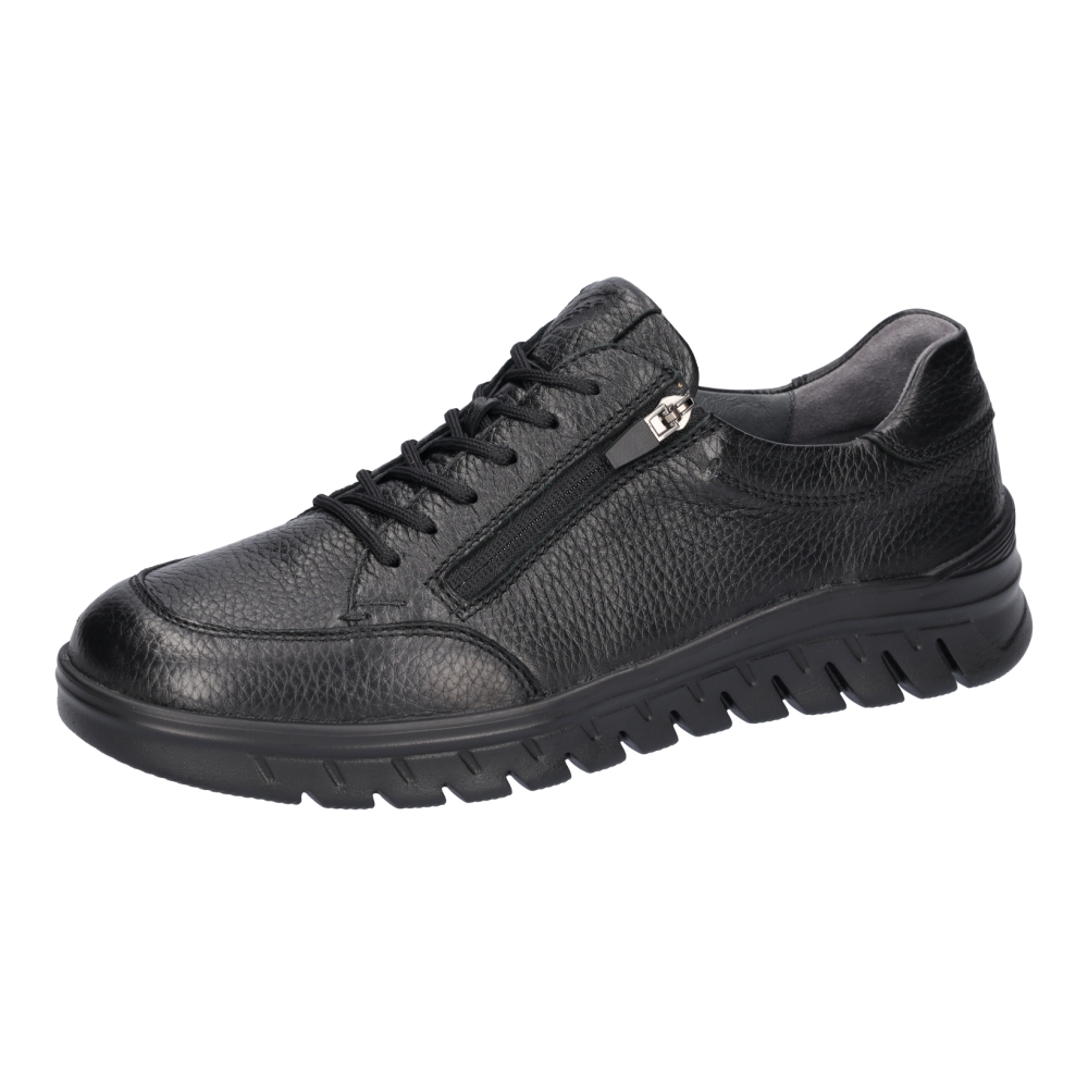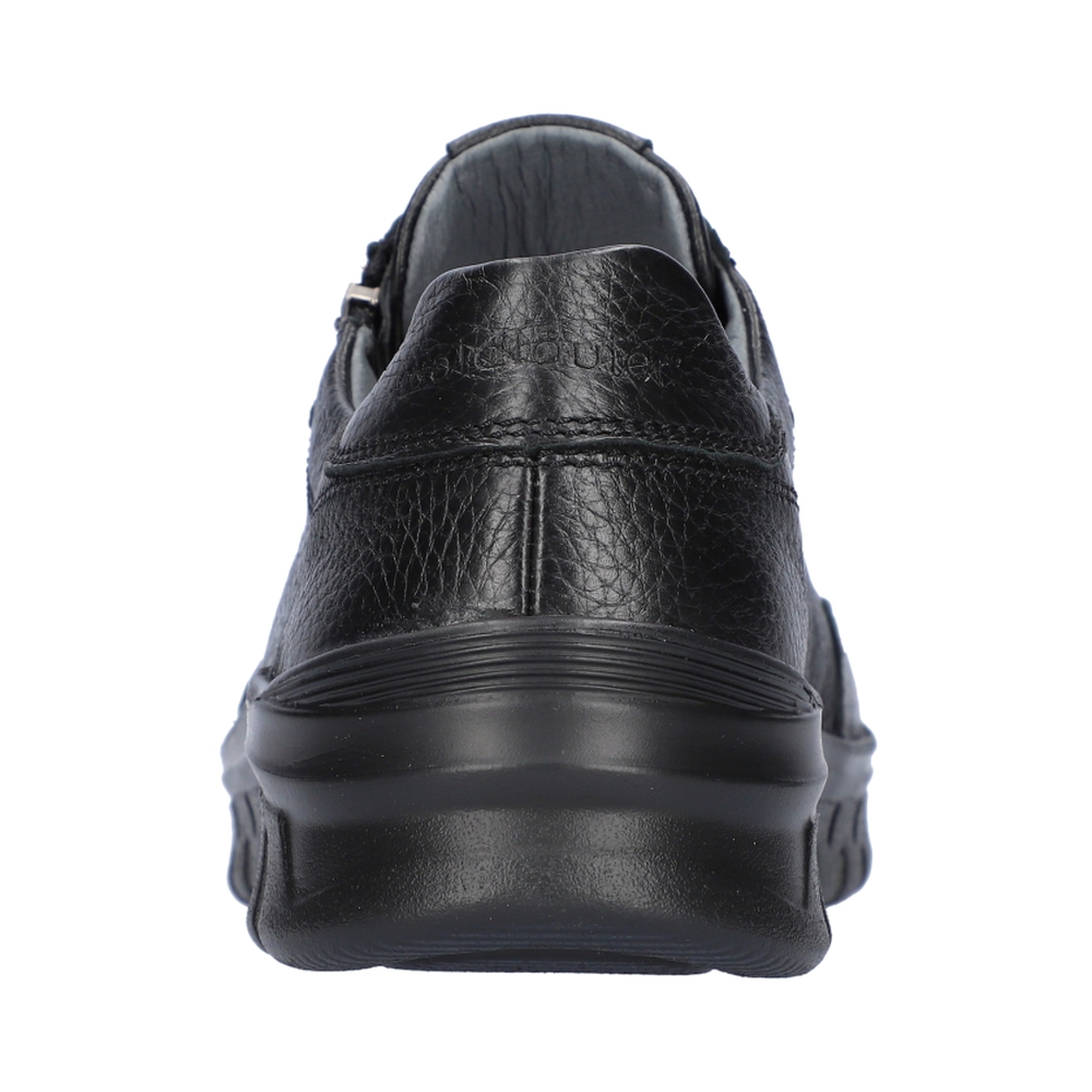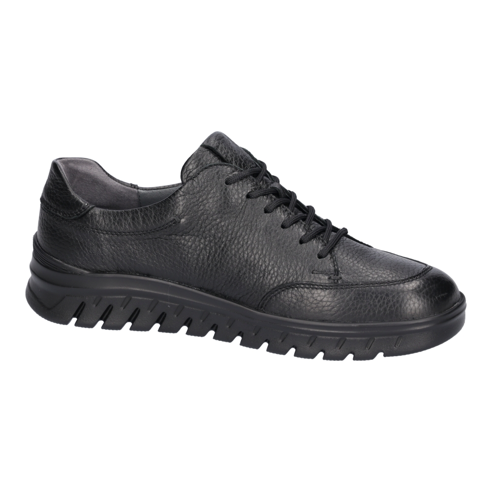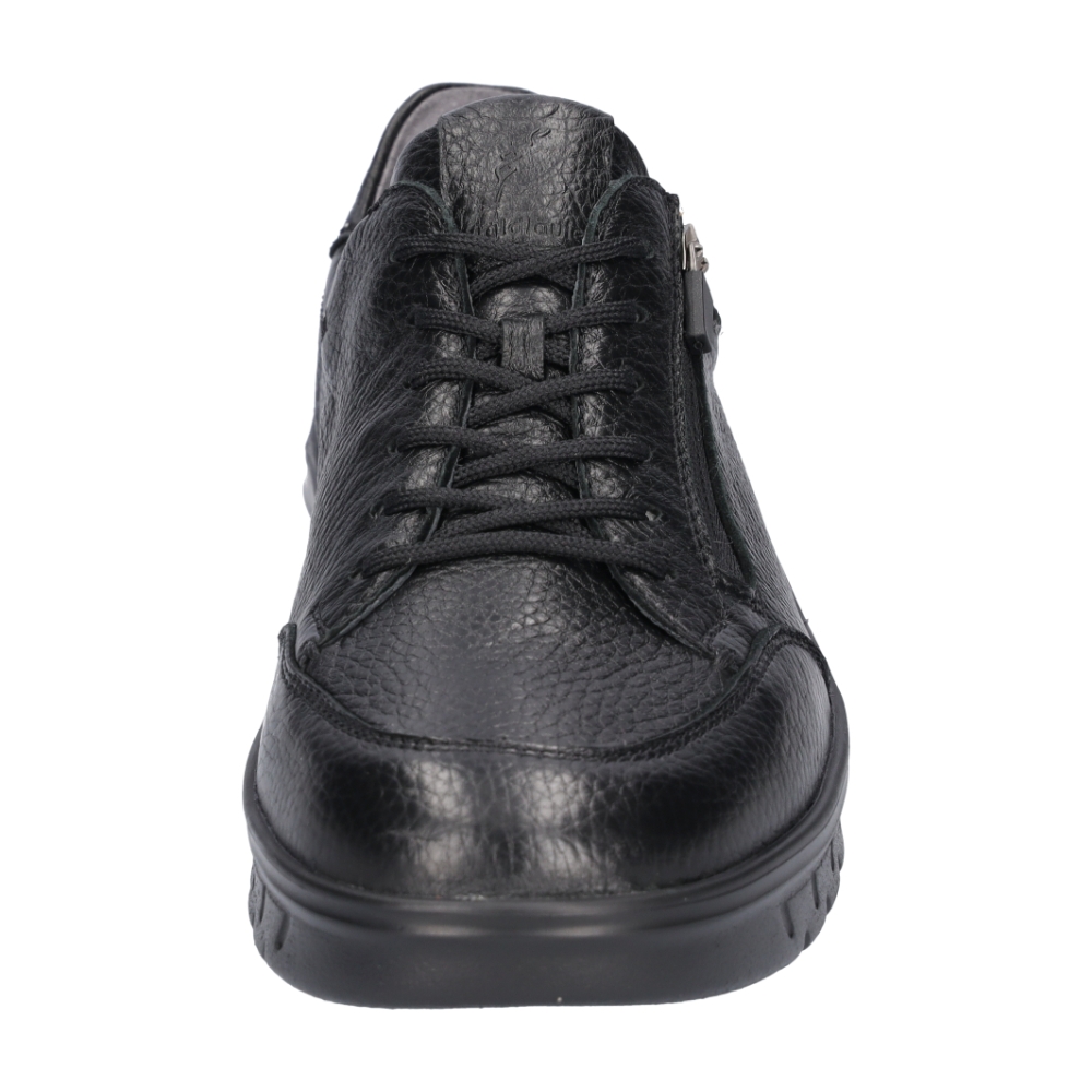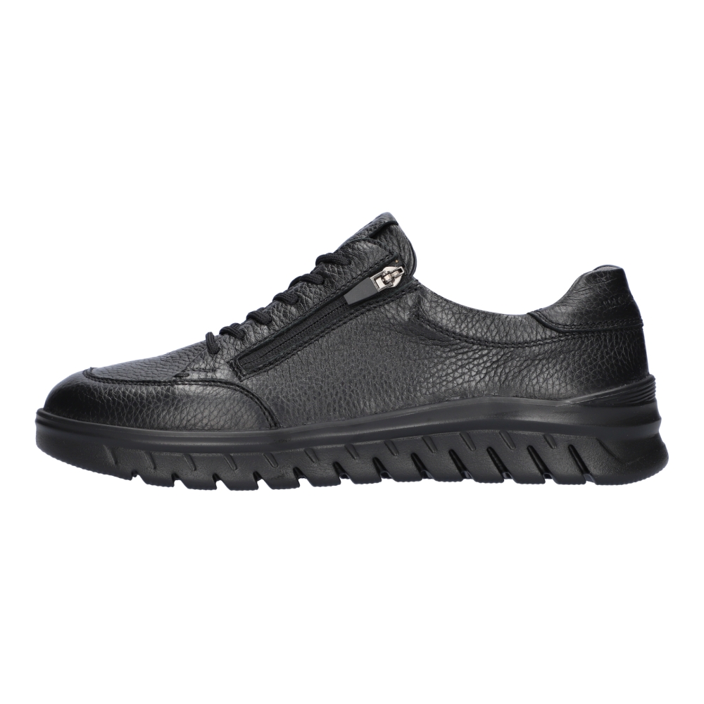 Typ: półbuty męskie Kolor: czarny Materiał wierzchni: skóra naturalna Wnętrze buta: skóra naturalna Wysokość klinu: 35 mm Dodatkowe informacje: Powiększona tęgość H przeznaczona jest dla Panów z wysokim podbiciem. Wyjmowana wkładka daje możliwość wymiany na własną wkładkę ortopedyczną, suwak z boku ułatwiający zakładanie. Buty wykonane z bardzo miękkiej skóry jelenia, zapewniają komfort użytkowania. Solidna podeszwa amortyzuje mikro-wstrząsy. Opracowano kształt buta w taki sposób, że wizualnie wrażenie jest szczuplejszej tęgości.
