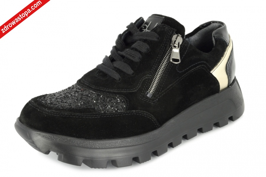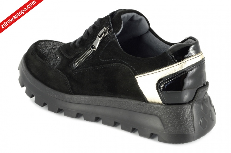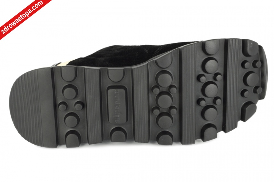 Typ: półbuty damskie Kolor: czarny – schwarz Materiał wierzchni: skóra zamszowa Wnętrze buta: z naturalnej bawełny Wysokość klinu: 40 mm Dodatkowe informacje: Duża tęgość H przeznaczona jest dla Pań z wysokim podbiciem. Wyjmowana wkładka daje możliwość wymiany na własną wkładkę ortopedyczną. Buty wykonane z miękkiej skóry, zapewniają komfort użytkowania. Solidna podeszwa amortyzuje mikro – wstrząsy. Suwak z boku ułatwia zakładanie. Opracowano kształt buta w taki sposób, że wizualnie wrażenie jest szczuplejszej tęgości.